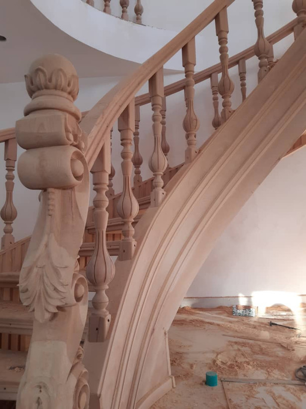 نرده چوبی راه پله خراطی بالونی شیار دار رنگ شده سوراخدار( میلترانسخور ) کد kh29