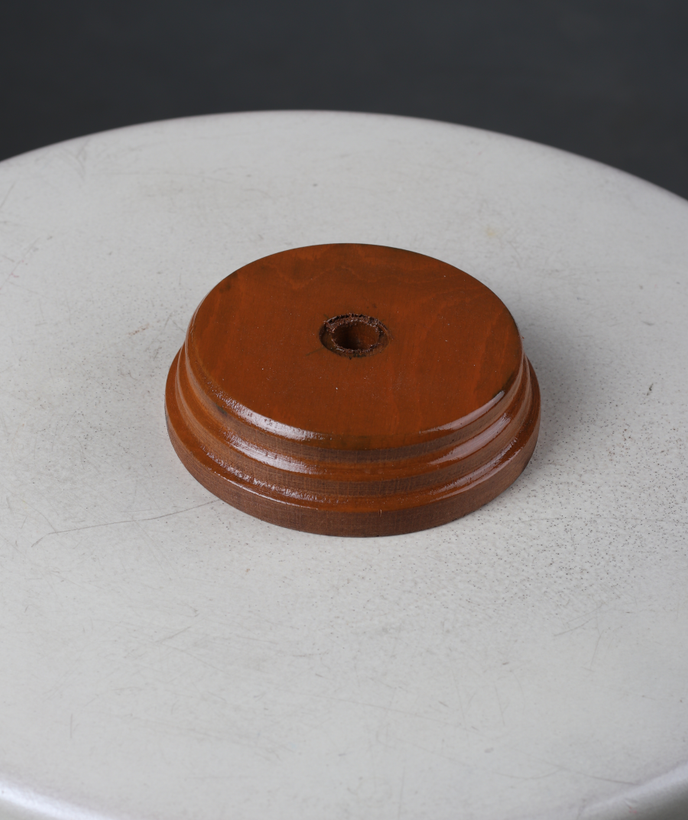 A wooden base saucer for the railing of the staircase, turned and inlaid, painted, perforated (Miltranskhor), round